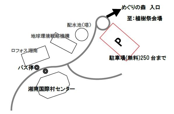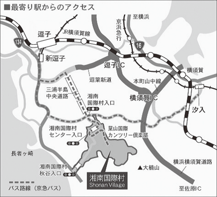 京急バス2番乗り場より「湘南国際村センター前」行きバスに乗車し、終点「湘南国際村センター前」で下車(約30分、片道440円)。