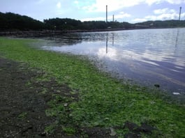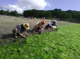 本日は横浜市内のビーチで、ビーチクリーンも兼ねてアオサを拾いました。