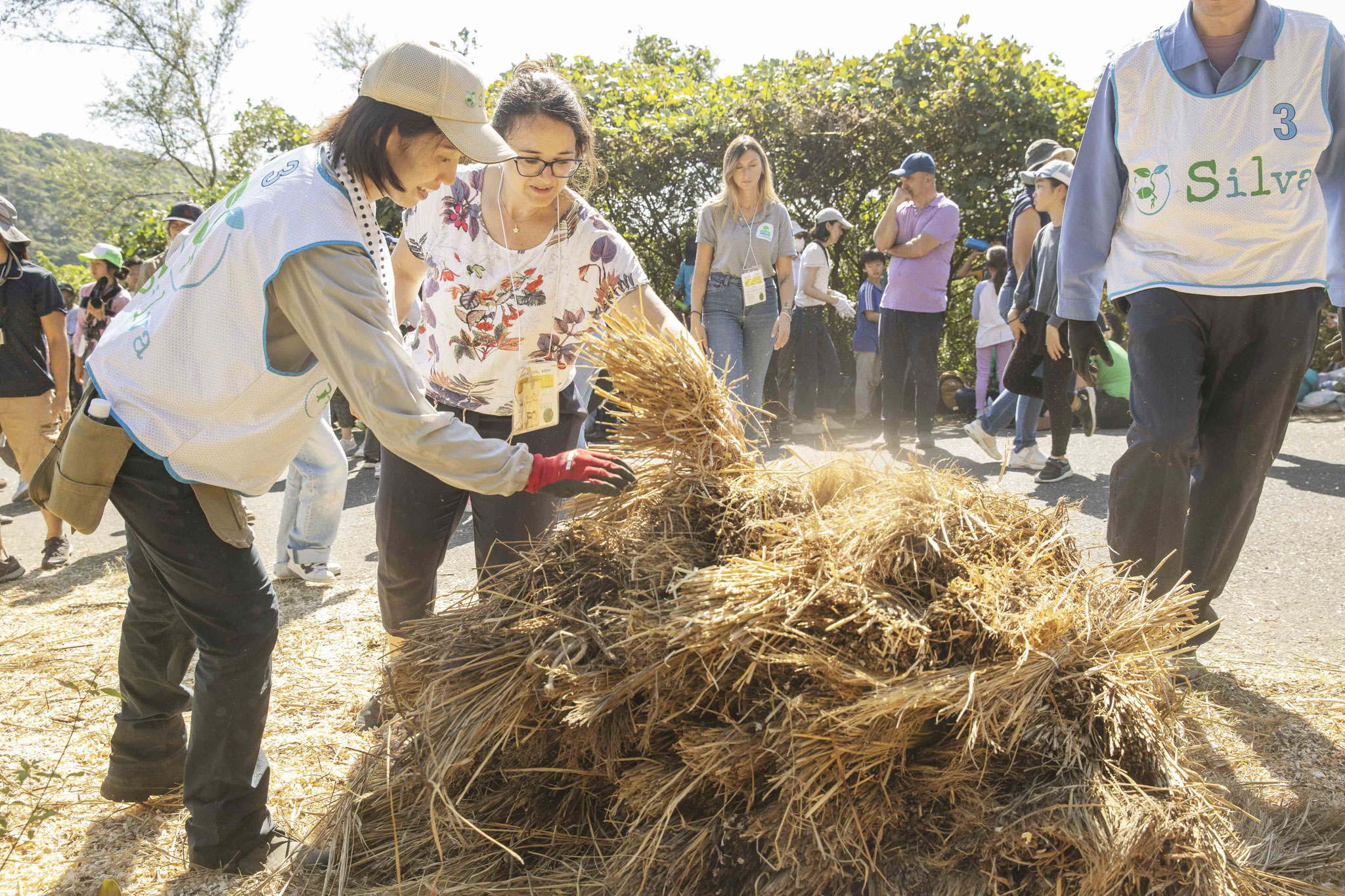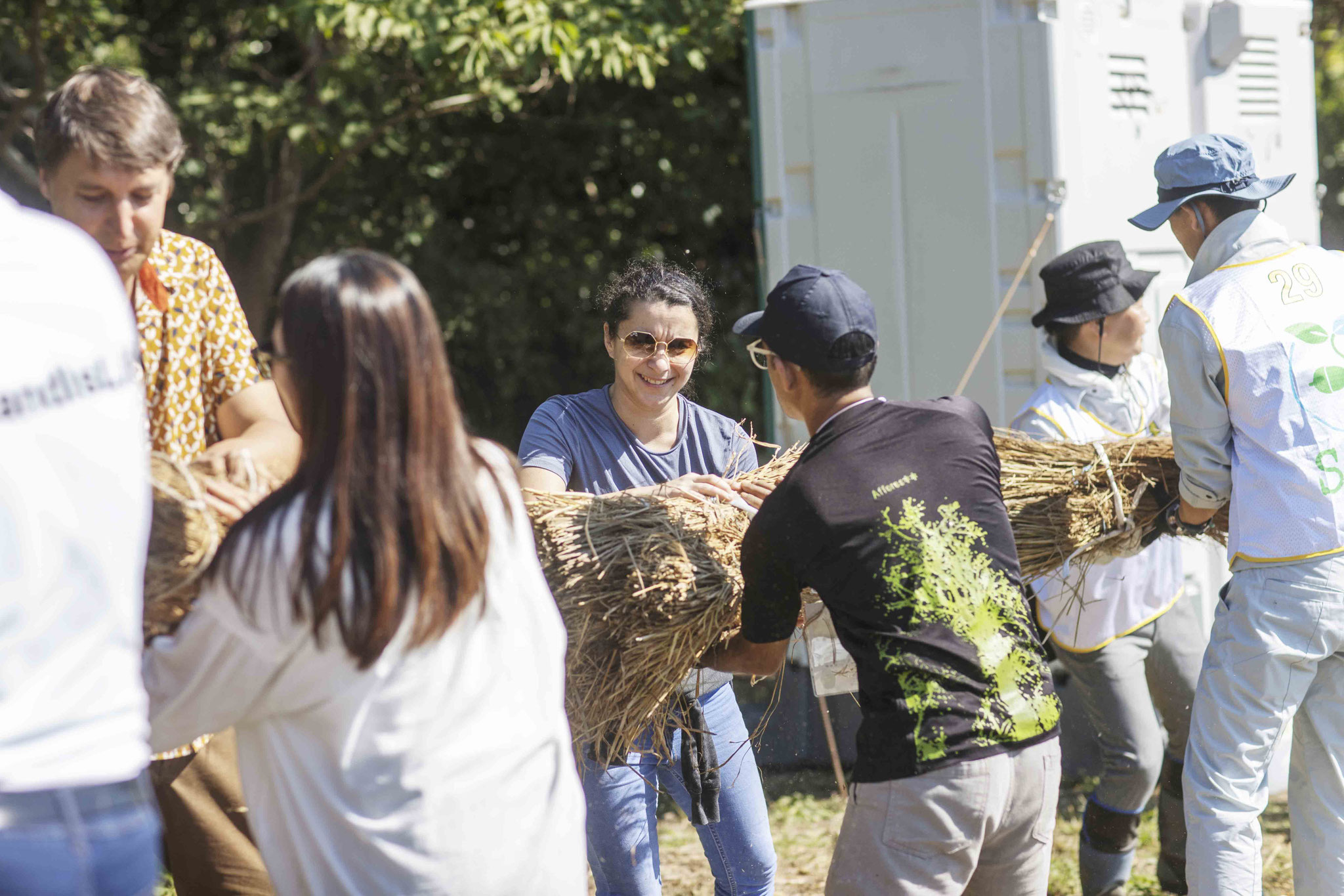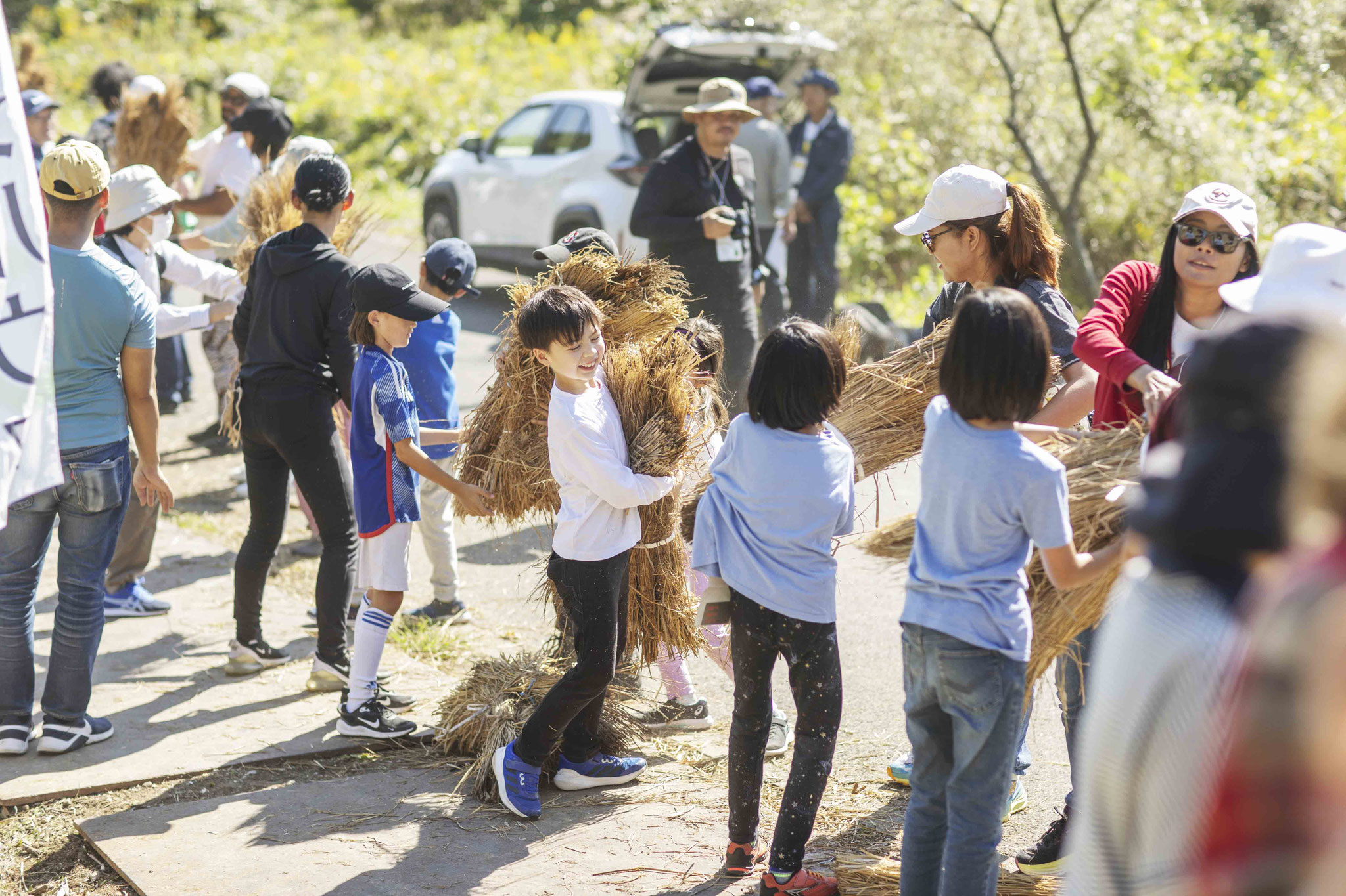 Everyone participated enthusiastically in carrying the straw. They carried it by hand to the mound, and although there was some confusion about the direction of the straw due to the subtle slope of the terrain, everyone carried it out joyfully. Additionally, some of the participants from overseas, who utilized their own interpretation of the Miyawaki Method, did not exactly follow Silva's instructions, leading to some challenges. However, I was informed that after the planting was completed, the Silva’s team inspected the planting site and made corrections in several areas which I greatly appreciate.