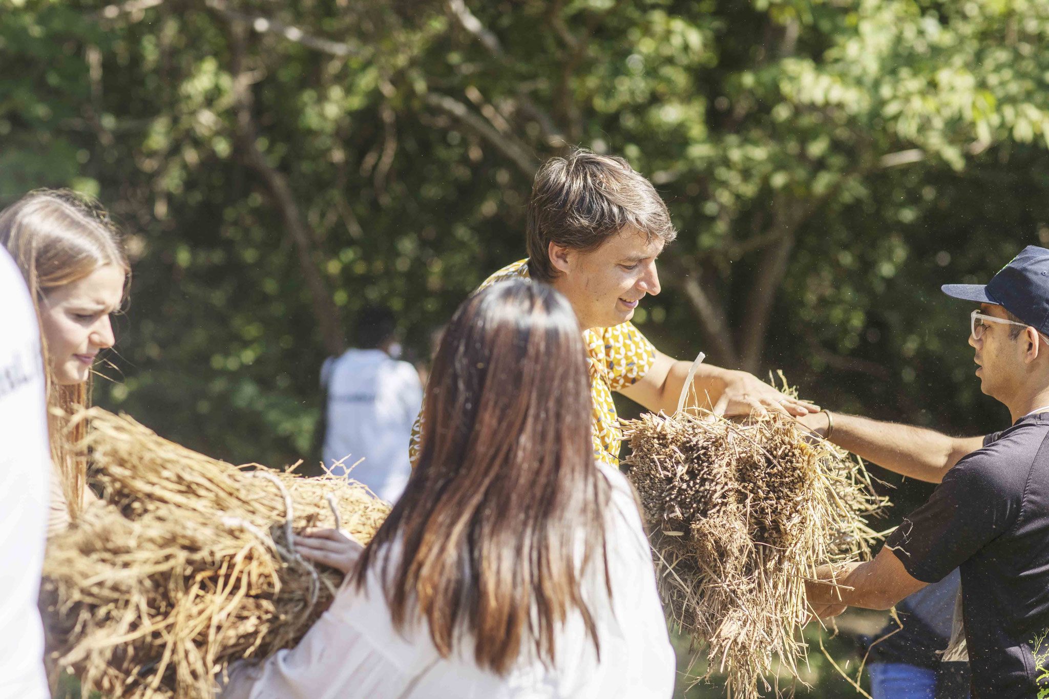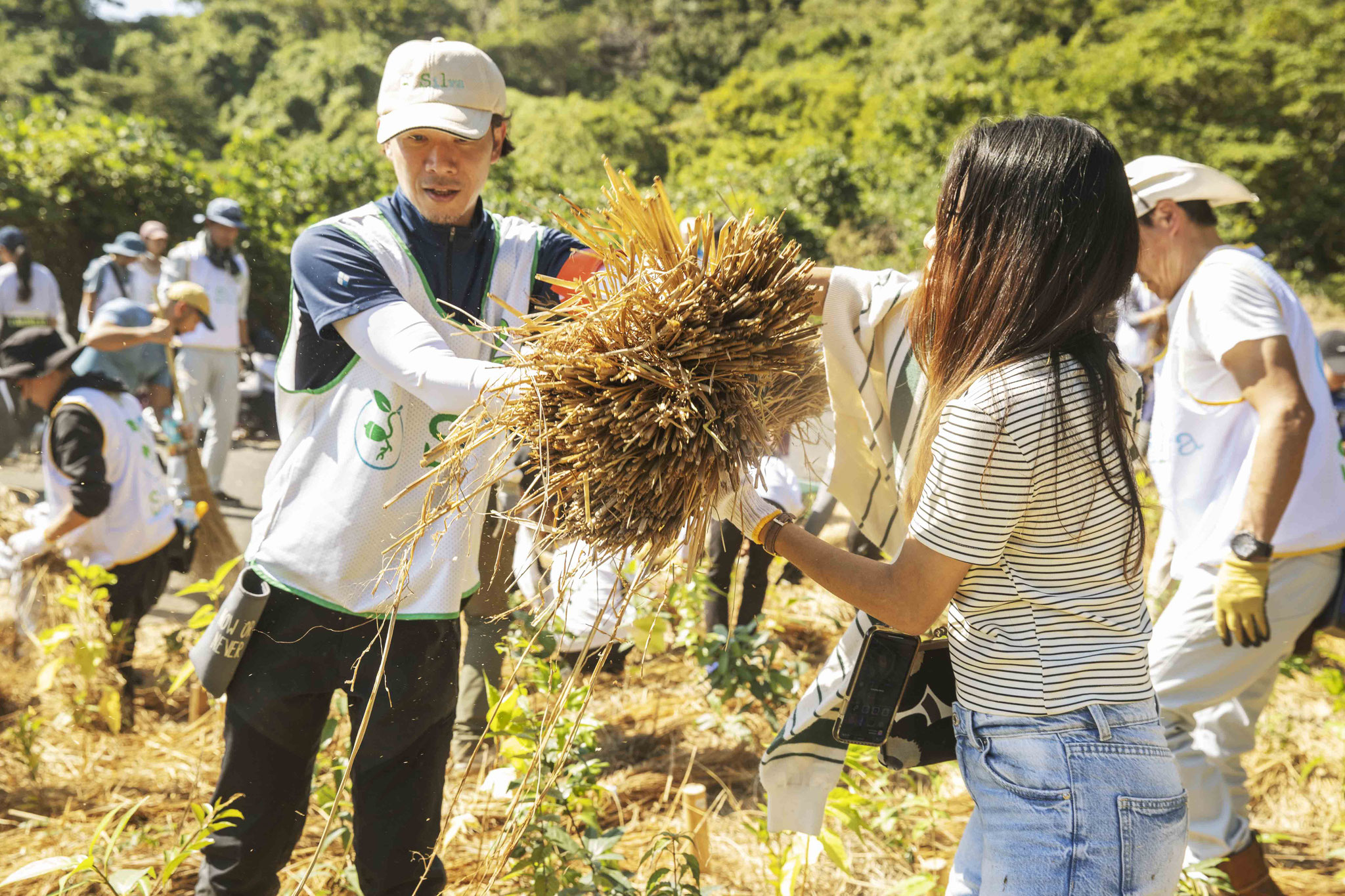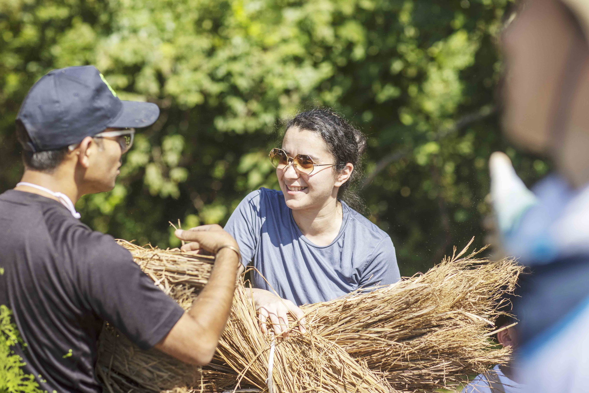 Everyone participated enthusiastically in carrying the straw. They carried it by hand to the mound, and although there was some confusion about the direction of the straw due to the subtle slope of the terrain, everyone carried it out joyfully. Additionally, some of the participants from overseas, who utilized their own interpretation of the Miyawaki Method, did not exactly follow Silva's instructions, leading to some challenges. However, I was informed that after the planting was completed, the Silva’s team inspected the planting site and made corrections in several areas which I greatly appreciate.