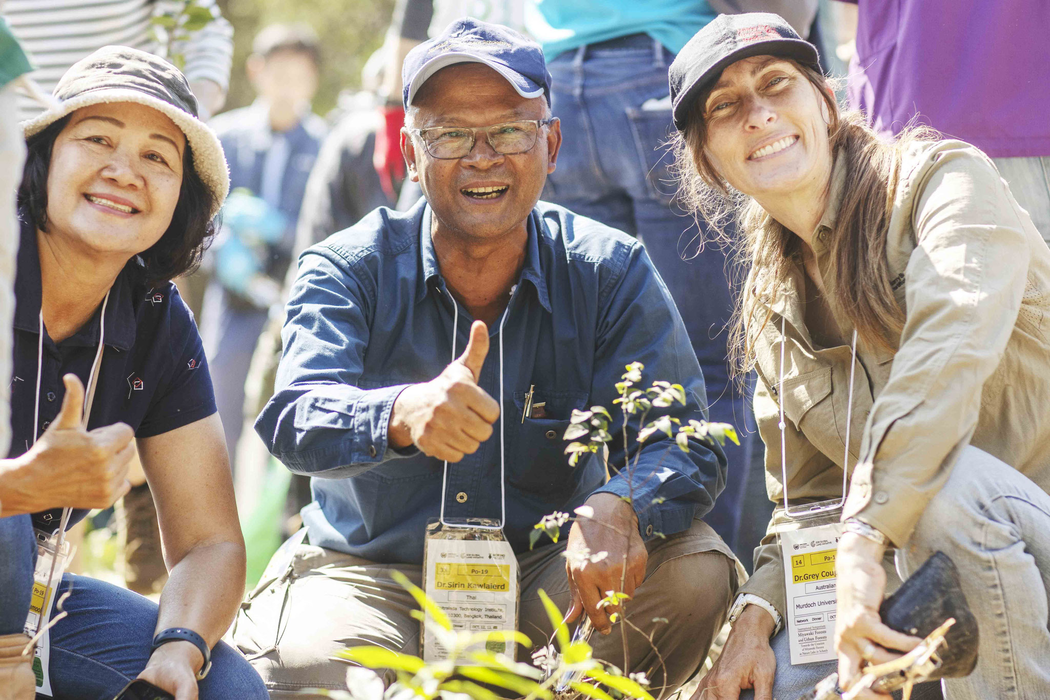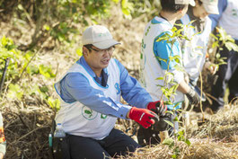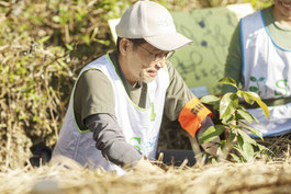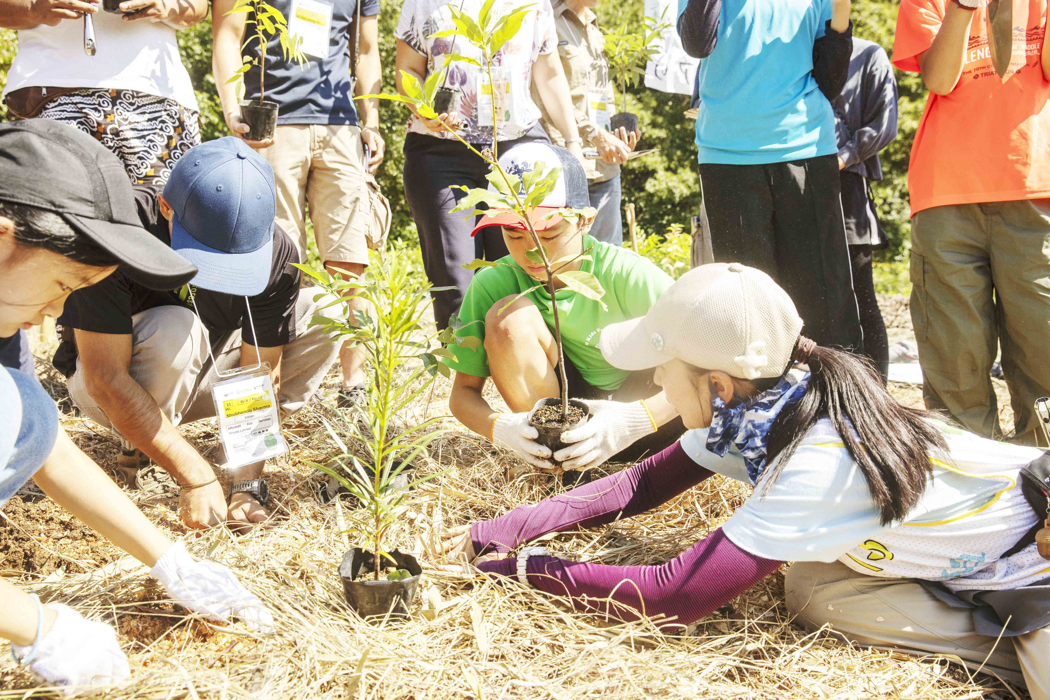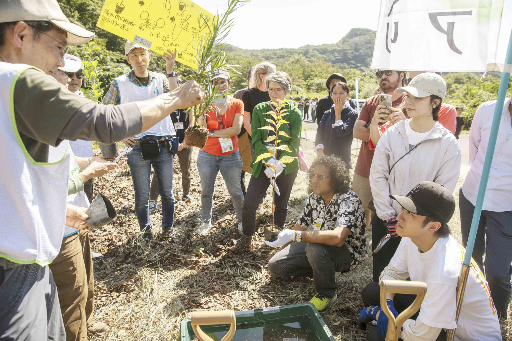 Fifty-five members of the G20 Global Land Initiative delegation came to Japan from 27 countries. A total of 203 people planted 500 trees of 34 specimens of Potential Natural Vegetation derived from vegetation surveys, creating a forest regardless of nationality and race.